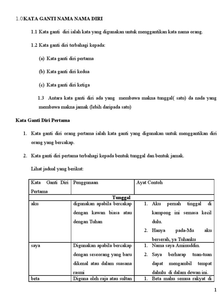 Latihan Kata Ganti Nama Diri Pertama Tahun 4 - Tahun 1 Kata Ganti Nama Diri